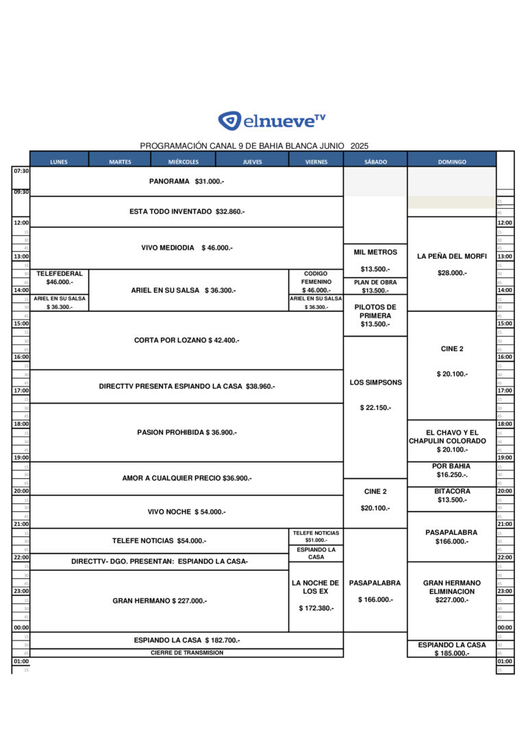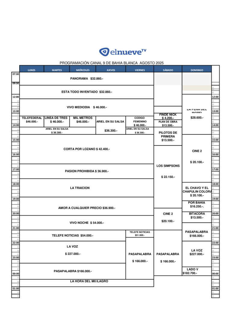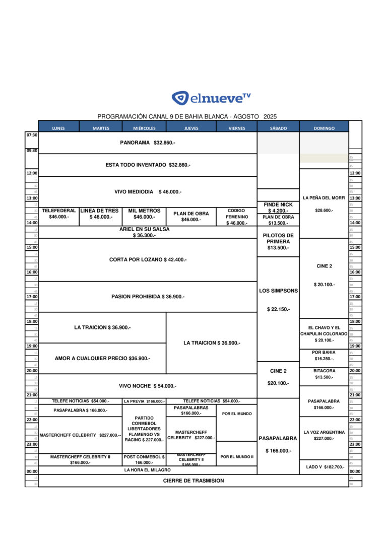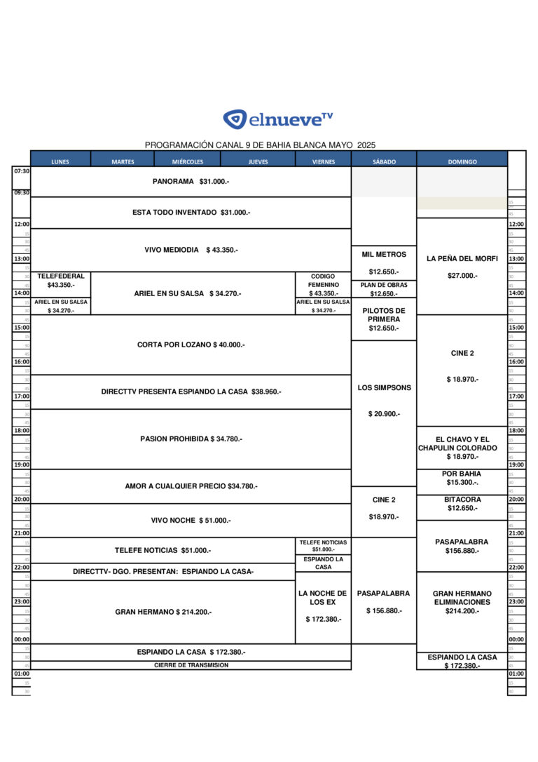 El Nueve TV es el canal de televisión más antiguo y prestigioso de Bahía Blanca. Desde su inauguración como Canal 9 Telenueva, el 24 de septiembre de 1965, ha sido la pantalla líder en una amplia zona del sur de la Provincia de Buenos Aires.